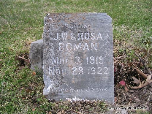 | BOMAN, Ford William | Mar. 3, 1919 | Nov. 29, 1922 | Inscription: "Asleep in Jesus - Son of J. W. and Rosa Boman" - Research Note: Son of John Wilkerson Boman and Rosa Mae Ford. | Headstone Mary Homesley Family Files Photo Phyllis Long |
