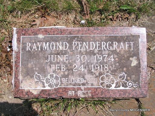 | PENDERGRAFT, Raymond Poke | June 30, 1874 | Feb. 24, 1918 | Inscription: "Beloved Son At Rest" - Research Note: Son of Floyd George and Ada Pendergraft. | Headstone Mary Homesley Census Photo Phyllis Long |