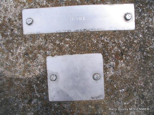 | FLETCHER, Jimmie | July 20, 1943 | July 20, 1943 | SSW: Elaine and Janice Fletcher - Research Note: homemade stone of concrete, metal plates with names and dates, no century dates. He was a son of Dow Fletcher and Ruby Day. - Fletcher Stone | Headstone Mary Homesley Family Files Photo Phyllis Long |