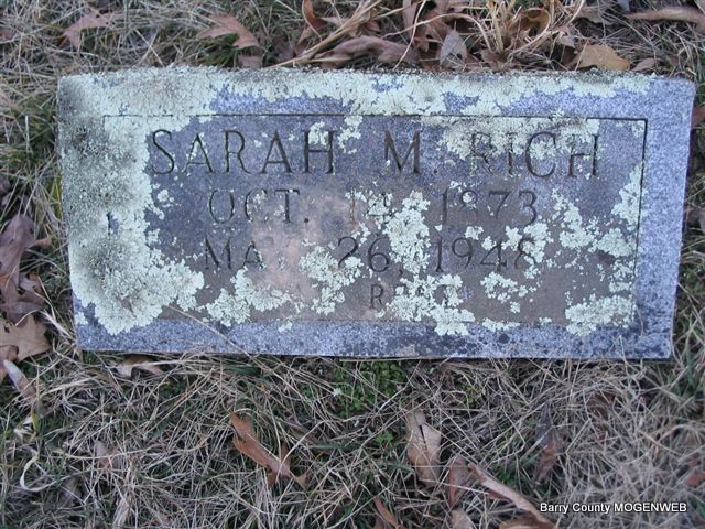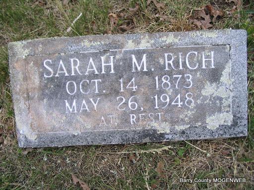 | RICH, Sarah Margaret (CARGILE) (MORGAN) | Oct. 14, 1873 Washburn, Barry Co., MO |
