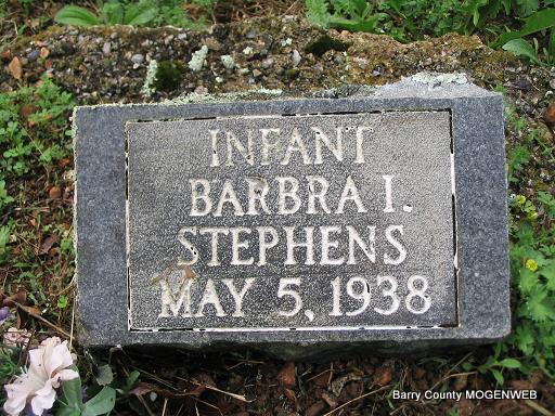 | STEPHENS, Barbara Ina | May 5, 1938 Ash Twp., Barry Co., MO |