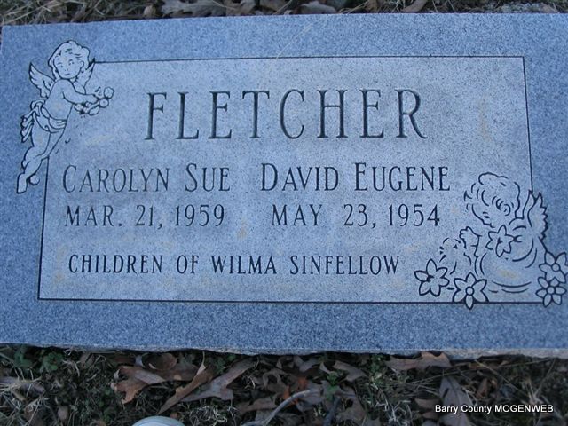 | FLETCHER, David Eugene | No Date | May 23, 1954 | SSW: Carolyn Sue - Inscription: "Children of Wilma Sinfellow" | Headstone Mary Homesley Photo Phyllis Long |