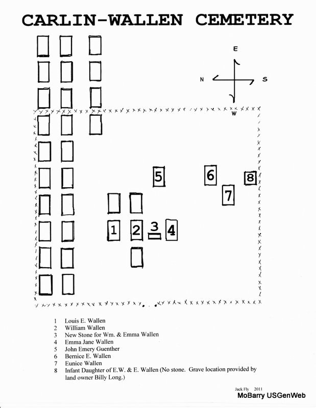 From what I understand, most mall Family History centers in the LDS churches have consolidated to the bigger cities. Joplin has one. Perhaps if someone is near one, they might be able to order this and help us identify who is buried in Carlin-Wallen Cemetery.