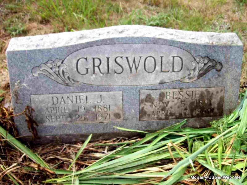 | GRISWOLD, Bessie, (DUNCAN) | Nov. 5, 1891 | Apr. 17, 1969 | SSW: Daniel J. - Research Note: Daughter of Robert Andrew Duncan and Emma Woods. Named in her father's obit. "The living son, R. A. Duncan of Cincinnati, O., and daughter, Mrs. D. J. Griswold of Fargo, North Dakota, were at his beside when he passed into rest." - Bessie M. Duncan married D. J. Griswold on Aug. 28, 1916 in Exeter, Barry Co., MO. | Online Newspapers MO Marriage Records Phyllis Long Photo Darla Marbut |