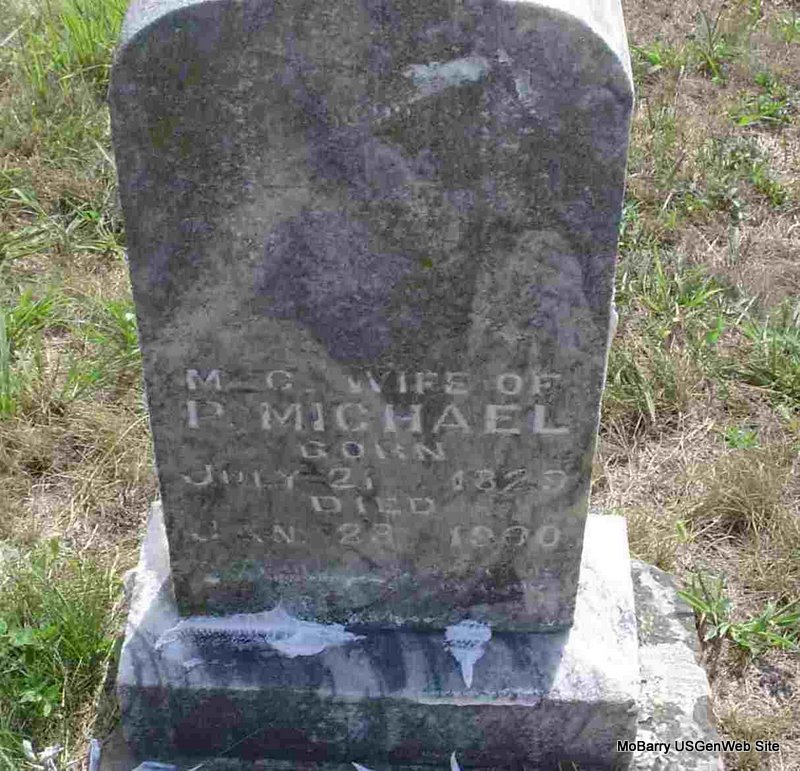 | MICHAEL, Manerva Caroline (BASKINS) | July 21, 1829 | Jan. 23, 1900 | Inscription: "Wife of Phillip Michael" - Research Note: Other researchers say she was the daughter of William C. Baskin and Rebecca Gibson. | Note Phyllis Long Photo Donna Cooper |