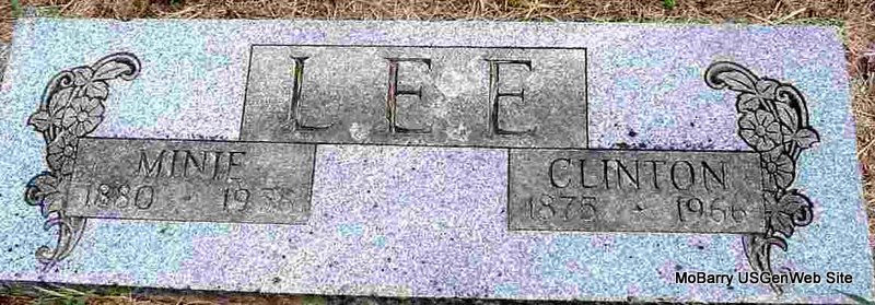 SSW: Clinton - Research Note: Her death certificate was indexed with the spelling of Minnie and reads Minie like the stone reads. Her father was given as Rueben B. Atkinson and her mother as Mary "Polly" Burnett. Clinton Lee was listed as her husband and he was the informant. | Death Certificate Photo Donna Cooper |