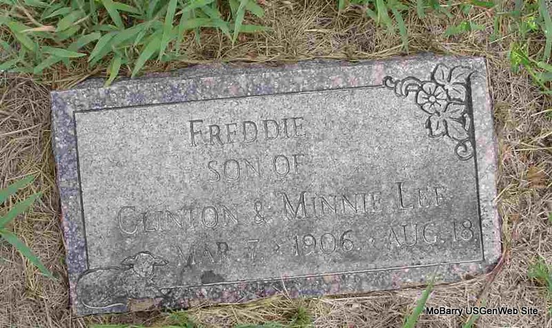| LEE, Freddie | Mar. 7, 1906 | Aug. 18, 1906 | Inscription: "Son of Clinton and Minnie Lee" | Photo Donna Cooper |