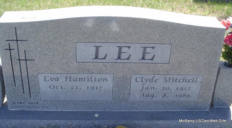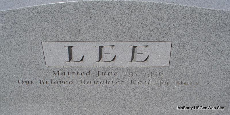 | LEE, Clyde Mitchell | Jan. 20, 1912 | Aug. 8, 1989 | SSW: Eva - Research Note: Son of Walter Clay Lee and Eldie J. Woods. - Back side of stone - Inscription: "Married June 19, 1936 - Our beloved daughter Kathryn Mary" | Census Phyllis Long Photos Donna Cooper |