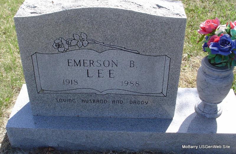 | LEE, Emerson Bert | Sept. 28, 1918 | Dec. 8, 1988 | Inscription: "Loving Husband and Daddy" - Research Note: Son of Walter Clay Lee and Eldie J. Woods. | Census Phyllis Long Photo Donna Cooper |