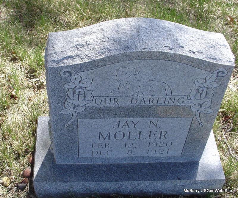 | MOLLAR, Jay N. | Feb. 12, 1920 | Dec. 8, 1921 | Inscription: "Our Darling" - Research Note: Probably the son of Fred Mollar and Stella Bryson. | Note Phyllis Long Photo Donna Cooper |