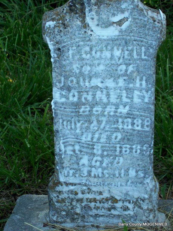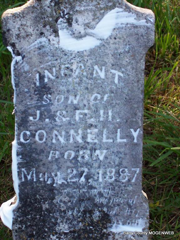 | CONNELLY, Infant | May 27, 1887 | No Date | Inscription: "Infant Son of J. & F. H. Connelly" | Headstone Roger Longley Photo Darla Marbut |