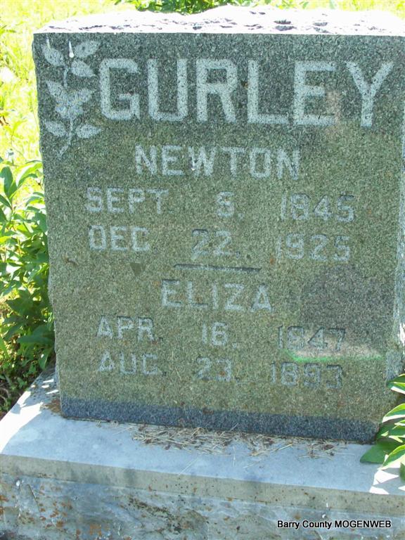 SSW: Newton - Research Note: Eliza Gurley was the daughter of David Cook and Mary Frances Burney. She married Albert Newton Gurley. | Headstone Roger Longley Family Knowledge Norman Smith Photo Darla Marbut |