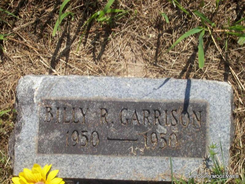 | GARRISON, Billy Ray | 1950 | 1950 | Research Note: Culver's Funeral Home records give no details about this stillborn child, but they made a card with his name on it on Apr. 2, 1950. | Headstone Roger Longley Culver Funeral Home, V. 4 P. 23, by Ted Roller Donna Cooper Photo Darla Marbut |