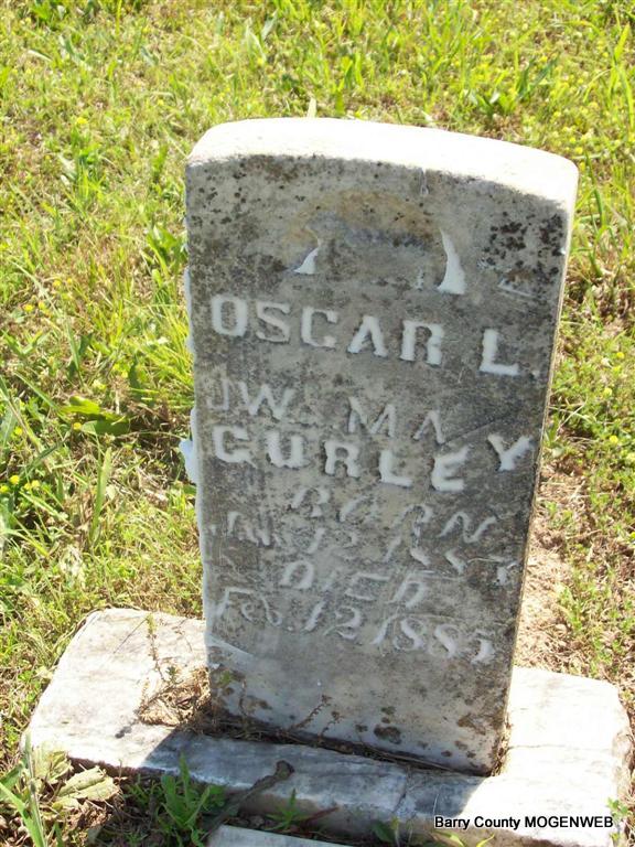 | GURLEY, Oscar Lonzo | Jan. 12, 1885 | Feb. 12, 1885 | Inscription: "Oscar L. J. W. & M. A. Gurley" - Research Note: Son of John Wesley Gurley and Mary Anne Combs. | Headstone Roger Longley Family Files Phyllis Long Photo Darla Marbut |