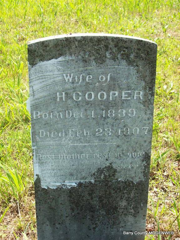 | COOPER, Sarah A. (JEFFRIES) | Dec. 1, 1839 | Feb. 23, 1907 Barry Co., MO |