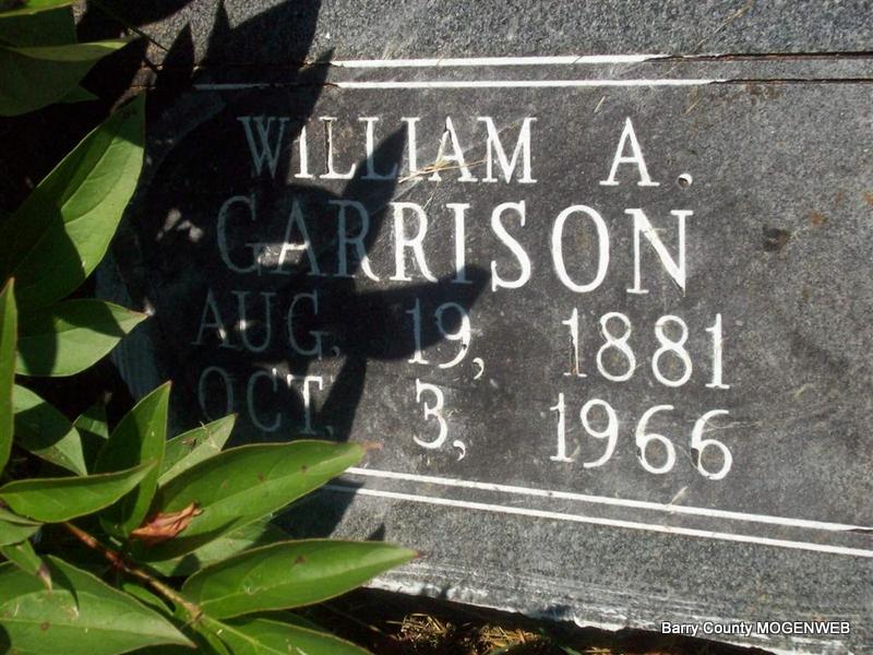 | GARRISON, William Alonzo | Aug. 19, 1881 Wheaton, Barry Co., MO |
