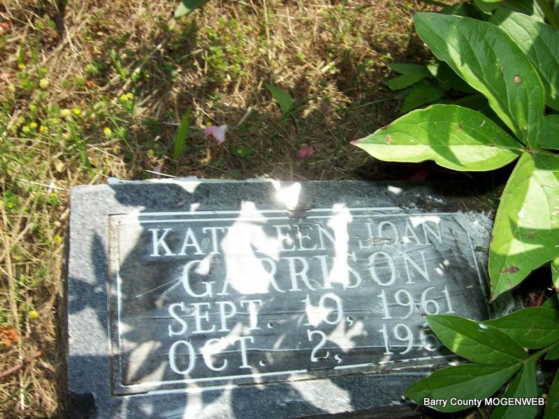 | GARRISON, Kathleen Joan | Sept. 10, 1961 | Oct. 2, 1966 | No Data | Headstone Roger Longley Photo Darla Marbut |