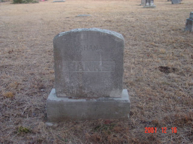 Research Note: First wife of William Henry Banks. Her death certificate gives her burial place as Maddy Cemetery, which is incorrectly stated. Her father is given as John Hart, born in IN and Enlow born in TN, was given as her mother's name. She was an invalid and had a bad foot that was afflicted with rheumatism. J. W. Glossin, Monett, MO, was the informant. - Henry Banks married Mahana Hart on May 9, 1880 in Barry Co., MO. - Another Photo - Another Photo | Headstone Roger Longley Death Certificate Donna Cooper MO Marriage Records Phyllis Long Photos Darla Marbut Photo Ted Roller |