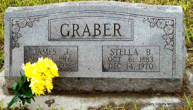 SSW: Stella - Research Note: Son of Alexander Graber born OH and mother not known. - Sam Graber of Pierce City, MO was the informant on the death certificate. - His wife was Josephine Woodward, buried at Concord Cemetery, died in 1904. James Graber married Josephine Woodward on Sept. 12, 1886 in Barry Co., MO. Second wife was Stella Box. - Another Photo | Headstone Roger Longley Death Certificate MO Marriage Records Census Phyllis Long Photos Darla Marbut |