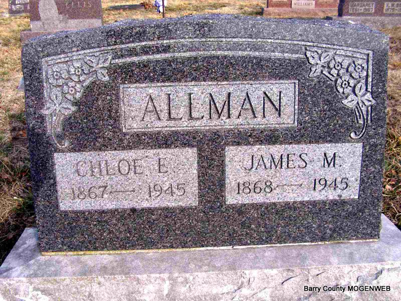 | ALLMAN, Chloe E. (REDDING) | Jan. 8, 1867 Barry Co., MO |