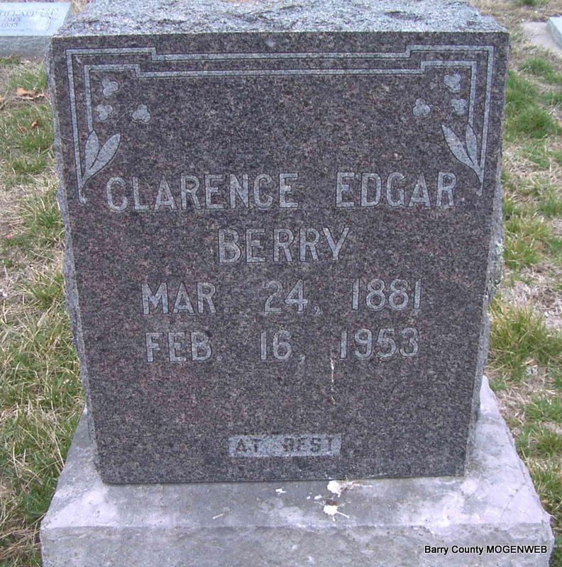 | BERRY, Clarence Edgar | Mar. 24, 1881 Barry Co., MO |