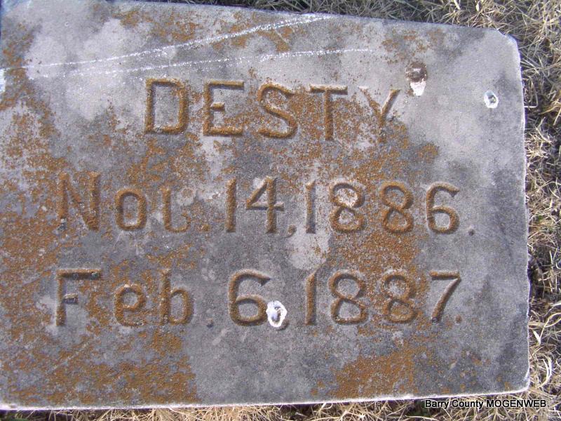 | BERRY, Desty | Nov. 14, 1886 | Feb. 6, 1887 | No Data | Headstone J. T. Mayes Photo Jay Trace |