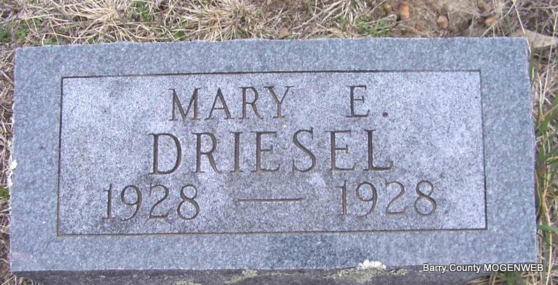 | DRIESEL, Mary Etta | May 26, 1928 Barry Co., MO |