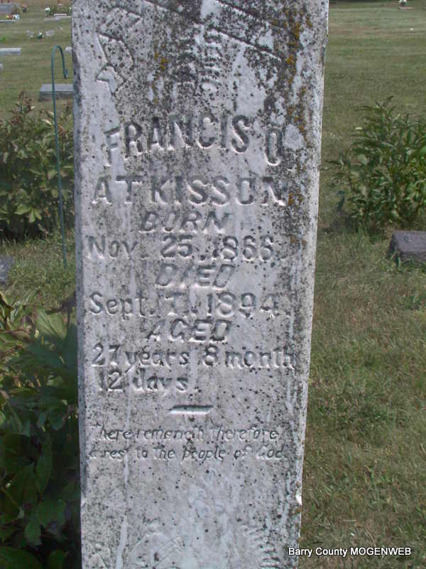 | ATKISSON, Francis Oliver | Nov. 25, 1866 Barry Co., MO |