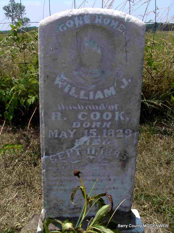 Sept. 11, 1885 | Inscription: "Gone Home" - "Husband of R. Cook." | Headstone J. T. Mayes Photo Jay Trace |