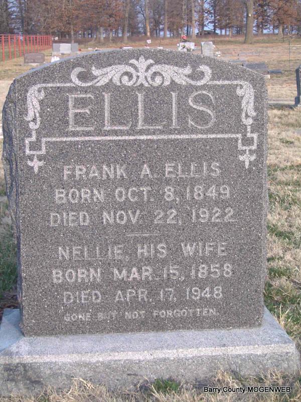 | ELLIS, Nellie Arline (ROBBINS) | Mar. 15, 1858 Barry Co., MO |