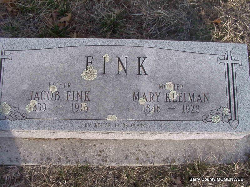 SSW: William Robert - Research Note: Daughter of Joseph Fink and Mary Kleinman/Klemme, both born Germany. Kansas City, MO resident. Mrs. Viva Cline of Kansas City, MO was the informant on the death certificate. | Headstone J. T. Mayes Census Death Certificate Phyllis Long Photo Jay Trace |