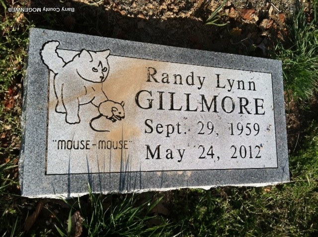| GILMORE, Randy Lynn | Sept. 29, 1959 | May 24, 2012 | Inscription: "Mouse - Mouse" | Photo Jay Trace |