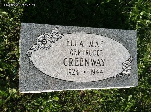 | GREENWAY, Etta Mae "Gertrude" | 1924 | 1944 | No Data | Photo Jay Trace |