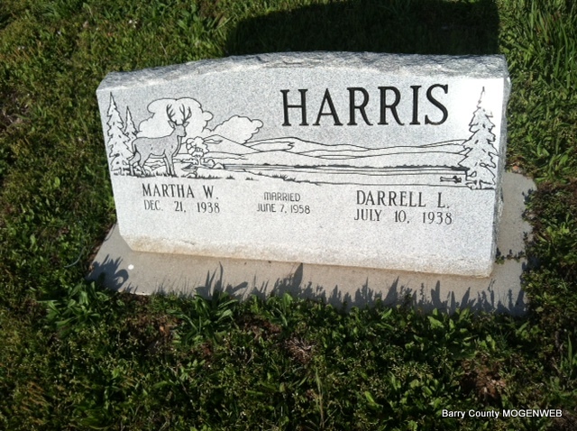 | HARRIS, Martha W. | Dec. 21, 1938 | No Date | SSW: Darrell L. - Inscription: "Married June 7, 1958" | Photo Jay Trace |