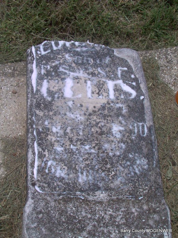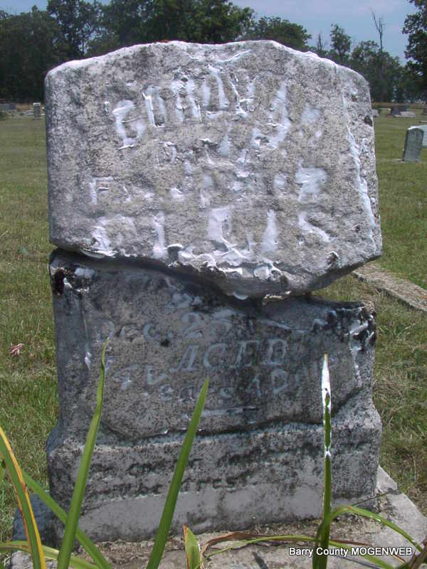 | ELLIS, Perry S. | Jan. 1, 1846 | June 22, 1896 | Research Note: Inscription: "Blessed Are The Dead Which Die In The Lord" - Research Note: Son of John Mackey Ellis and Hannah Maples. - MO Marriage Records have Perry A. Ellis age 21, (right age for this Perry) married Sarah F. Lemaster, age 17, on Apr. 12, 1868 in Barry Co., MO. - Cassville Republican, Sept. 28, 1893 - Madry News: P. S. Ellis has returned from the Strip. He says that he is not stuck on it, that Barry County is good enough for him. | Headstone J. T. Mayes Online Newspapers MO Marriage Records Phyllis Long Photo Jay Trace |