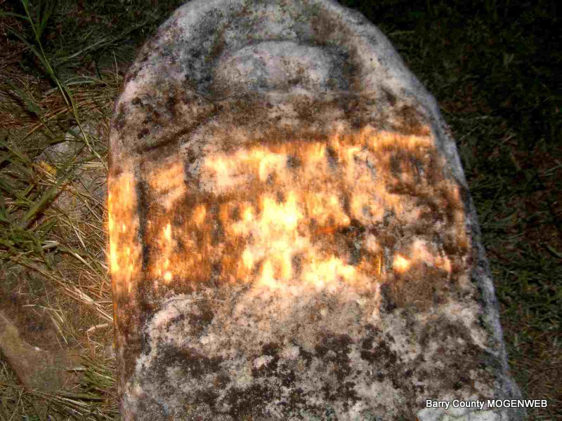 Inscription: "Father" - SSW: Amanda, Albert, Andrew, Caroline L., Eldora M. Infant Williams, Infants Williams, James H., James H. and Robert A. - Research Note: Civil War Veteran. He first married Dorcas P. Murray in McMinn Co., TN. She died in 1877 and is buried at Osa Cemetery in Barry Co., MO. His second wife was Caroline Louisa Spencer. Son of John Williams and Elizabeth Massey. - June 1, 1907, Cassville Democrat - Harry Horine has secured a pension for Jas. H. Williams of Madry. He was granted a pension of $6.00 for month from Nov 29, 1899 to April 1, 1893 from April 1st 1903 to Feb 13, 1907, he was granted $8.00 per month. Under the act of Feb 6, 1907, he will get a still higher rate. - May 22, 1909, Cassville Democrat - James Williams of Ozark township, died May 1st of paralysis, age 73 years. He was a good citizen and was an uncle of Circuit Clerk C. W. Williams. He left a wife and children. - Link to Obit | Headstone J. T. Mayes Census Online Newspapers Phyllis Long Photo Jay Trace |