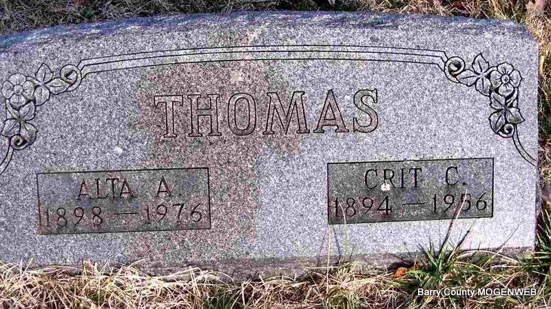 | THOMAS, Alta Ann (ROBBINS) | Aug. 28, 1898 Barry Co., MO |