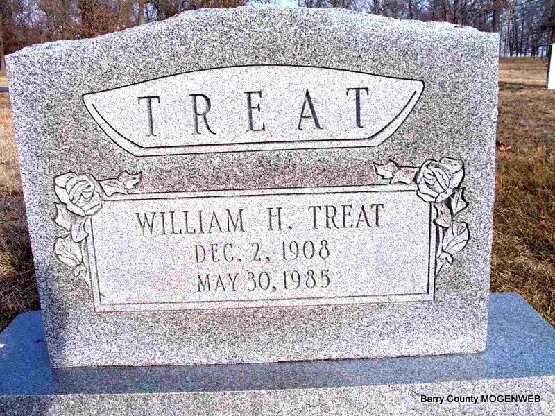 Apr. 21, 1933 | SSW: Perley S., Johnny, Alice Cheney, Cheney infant and Dorothy - Research Note: New stone. Death Certificate gives date of death as April 21, 1933. Funeral home records have his name as Pearly and born Feb. 15, 1879 in IL. He died of pulmonary hemorrhage. Charged to William H. - Son of Julius J. and Alice A. Treat, he married Sadie Alice Hamlin. - Cassville Republican, July 10, 1919 - P. S. Treat of near Aurora who served hereon the Petit Jury at the June term of Circuit court, says that the $2,400 worth of school district bonds voted a short time ago in his school district, the Clay Hill school district, have been sold to Fawver and Co. of Seligman and that work will begin on the new building soon. | Death Certificate Donna Cooper Online Newspapers Phyllis Long King Funeral Home Photo Jay Trace |