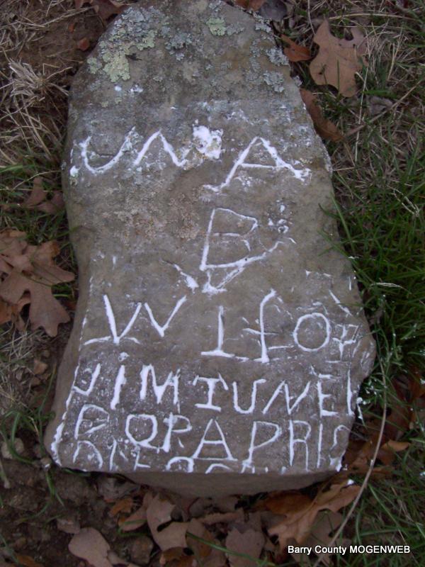 | TUNNELL, Una B. | No Date | Apr. 1, __ | Inscription: "Wife of Jim" - Research Note: Field Stone | Headstone J. T. Mayes Photo Jay Trace |