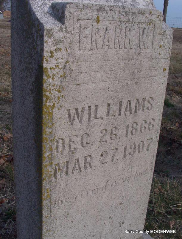 | WILLIAMS, Margaret Ann (WAGNON) | Nov. 16, 1881 Aurora, Barry Co., MO |