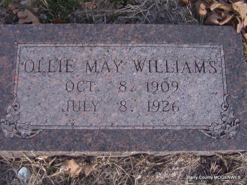 | WILLIAMS, Ollie May | Oct. 8, 1909 Barry Co., MO |