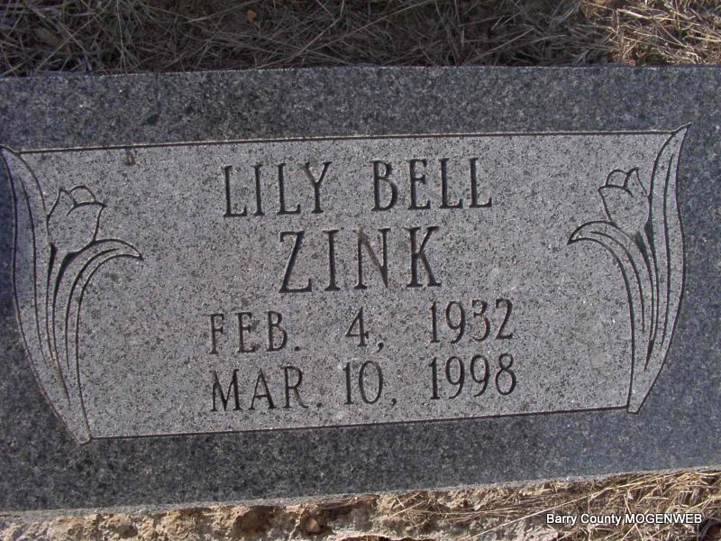| ZINK, Lily Bell (GILLMORE) | Feb. 4, 1932 Barry Co., MO |