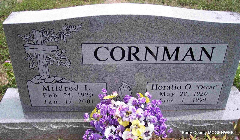SSW: Horatio O. "Oscar" - Research Note: Aged 80 years. She was the daughter of Finis Tunnell and Leona Martha Means. The informant was Nancy Hilburn (dau.) of Blue Eye, MO. Wife of Horatio "Red" Cornman. | Monett Times Jan. 18, 2001 Mary Homesley Crafton-Cantrell Funeral Home Connie Schmidt Photo Diana Cope |