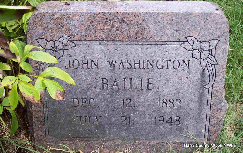 | BAILIE, John Washington | Dec. 12, 1882 Jenkins, Barry Co., MO |
