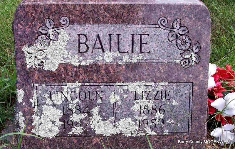 SSW: Lizzie - Research Note: Son of Samuel M. Bailie and Susan Ann Redding. - Cassville Republican, November 2, 1911 - Clio News: Lincoln Bailie of Galena, Stone County, will move to Clio sometime this week | Census Online Newspapers Phyllis Long Photo Diana Cope |
