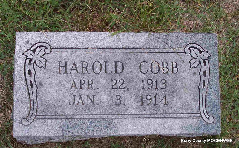 | COBB, Harold | Apr. 22, 1913 | Jan. 3, 1914 | Research Note: Most likely the son of Ula (Williams) and Aaron Cobb. | Note Phyllis Long Photo Diana Cope |