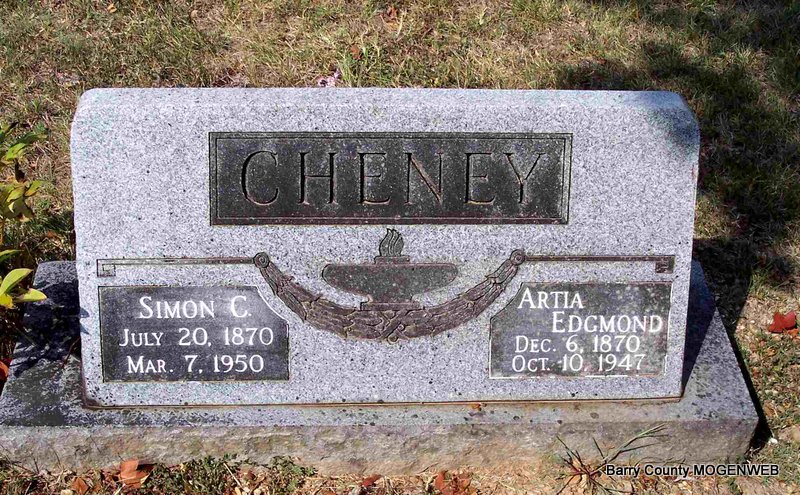 SSW: Simon C. - Research Note: Daughter of Sterling A. Edgmond and Matilda Fulkerson. Her husband, Simon, was the informant on the death certificate. Simon Cheney, age 27, married Artia Edgmond, age 27, on Sept. 19, 1898 in Mt. Vernon, Lawrence Co., MO. | Death Certificate MO Marriage Records Phyllis Long Photo Diana Cope |