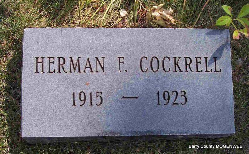 | COCKRELL, Herman F. | Mar. 12, 1915 | Apr. 10, 1923 | Research Note: His death certificate reads that his parents were Mansfield and Effie (Haley) Cockrell. He died from the effects of bronchial pneumonia, after effects of influenza. | Death Certificate Donna Cooper Photo Diana Cope |