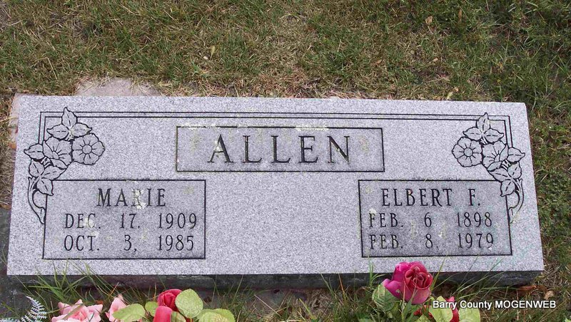SSW: Marie - Research Note: Elbert Franklin was a son of Rev. Levi Allen buried at McCormick Cemetery and Sarah Ellen (Bailie) Allen buried here. | 1900-1930 Census, WWI Draft Cards Michael Stone Photo Diana Cope |