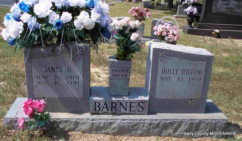 SSW: James O. - Research Note: She was the daughter of Thomas and Lilly (Cook) Hilton. She married J. O. "Jim" Barnes in 1935. He preceded her in death. She was also preceded in death by one daughter, Joyce Ina; two sisters, Dorothy Hall and Mary Harmon; two brothers, Amos and Benton Hilton; and one great-grandson. She was a lifelong resident of Barry County. | Fohn Funeral Home Phyllis Long Photo Diana Cope |